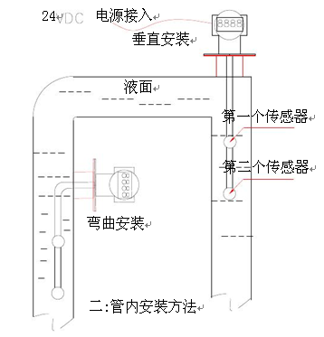 3: 管(guǎn)道安裝時需讓液(yè)體從zui下面傳感器(qi)之下進入液👈體,或(huo)者從zui上面傳感器(qi)的上面進入液體(tǐ),不要從中間進入(rù)液體。管道安裝通(tōng)液體時,管道閥門(men)或者彎頭部分至(zhi)少留出30CM液體(tǐ)緩沖距離。