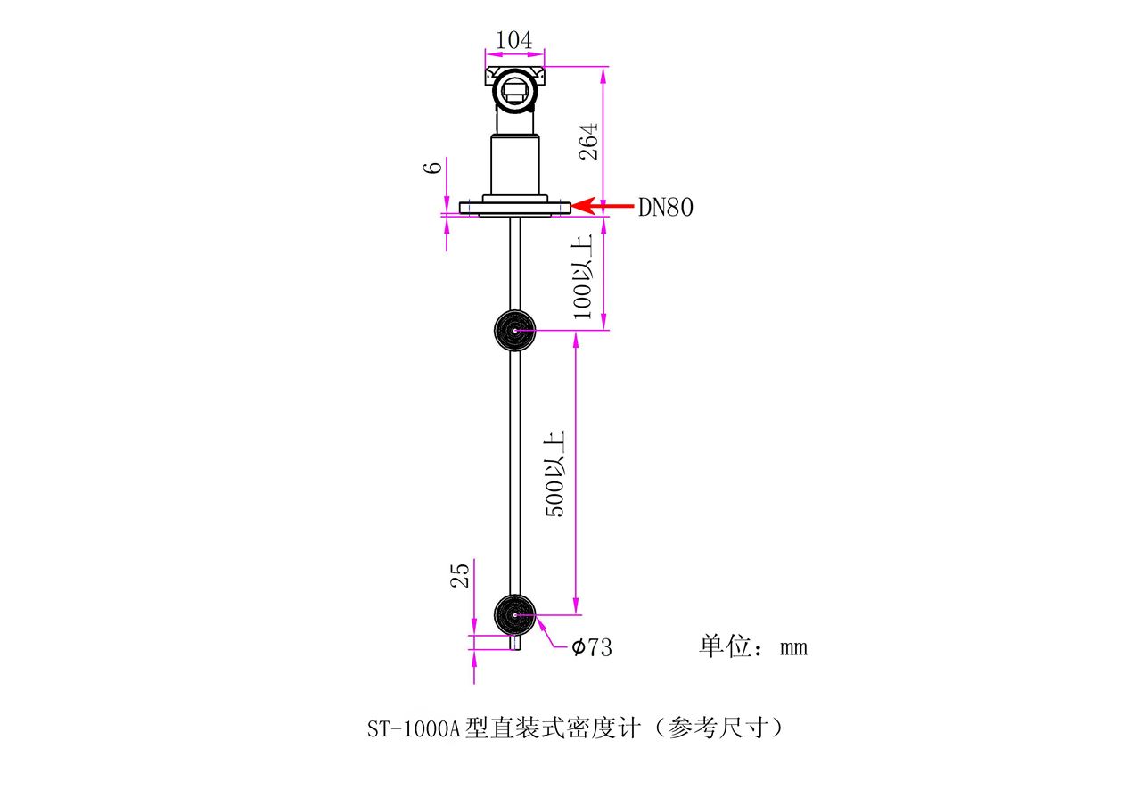 1: 直接(jie)式 在線液體(tǐ)密度計傳感器部(bù)分間距zui少爲200mm,直徑爲50mm, 現場(chang)不能小于這些尺(chi)寸安裝,如選(xuǎn)擇彎曲型密度計(jì),請測量好可(kě)以伸進管内的法(fa)蘭和長度尺寸.