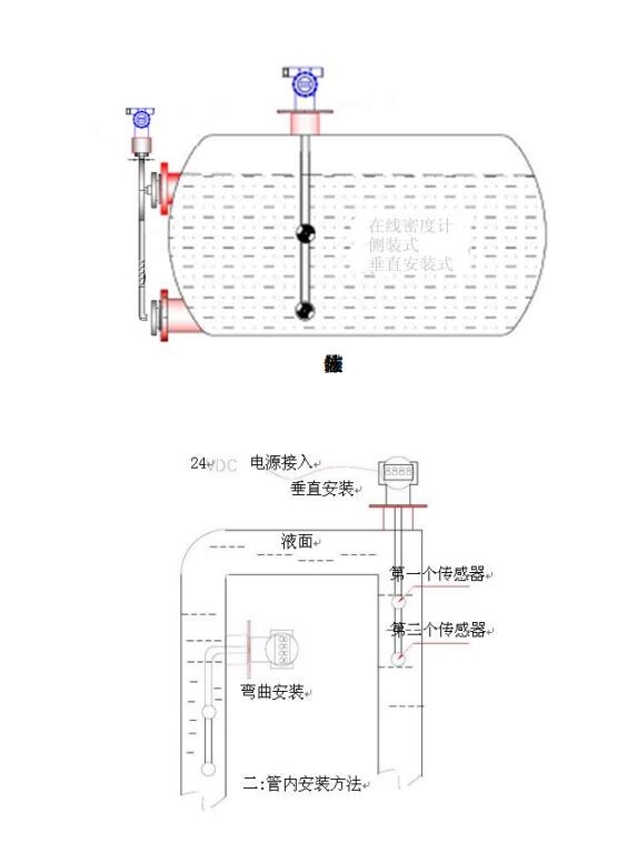 2: 現場(chǎng)液體必須保持沒(méi)過兩個測量傳感(gǎn)器,法蘭到第一個(gè)傳感器的距離可(kě)選.