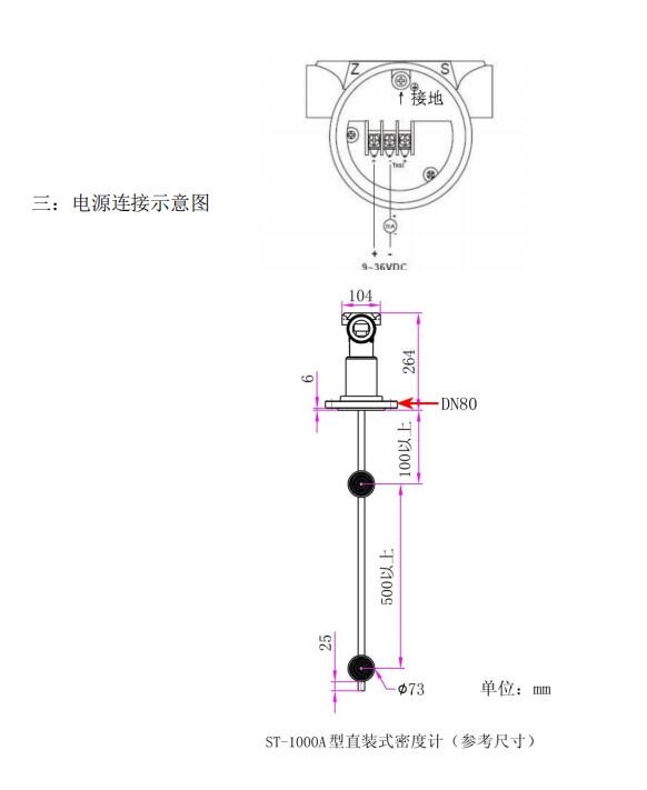 1: 直(zhi)接式 在線液體密(mi)度計傳感器部分(fèn)間距最少爲 200mm,直徑(jìng)爲 50mm,現場不能小于(yu)這㊙️些🔞尺寸安裝,如(ru)選擇彎曲型密度(du)計,請測量好可以(yǐ)伸進管内的法蘭(lán)和長度尺寸.