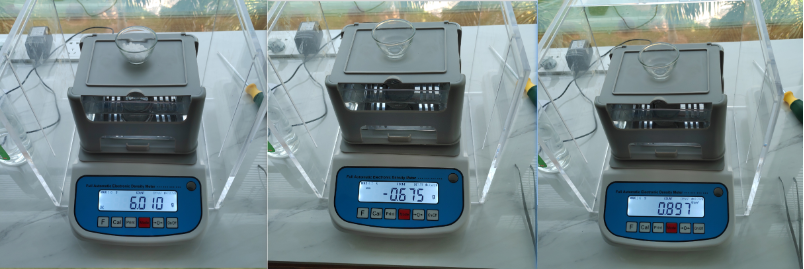 按(an)下mode鍵記錄下(xia)重量。顯示密(mi)度值0.893g/cm3.