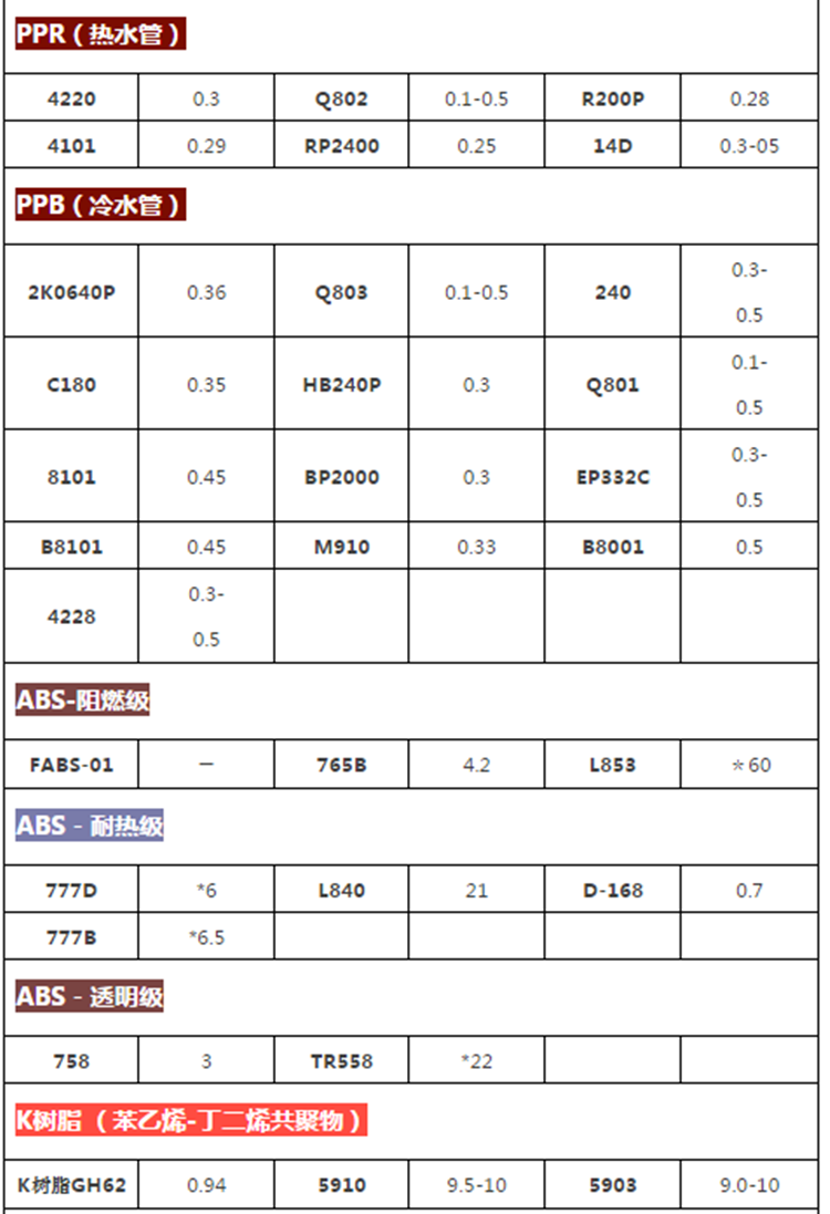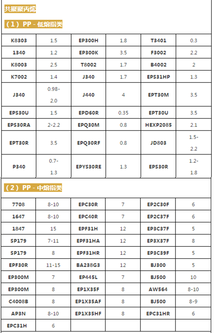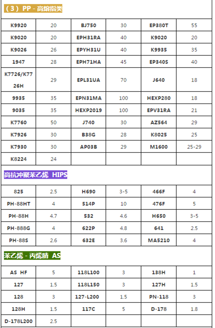 常見塑料牌号(hao)的熔融指數,一起(qǐ)來學習吧。