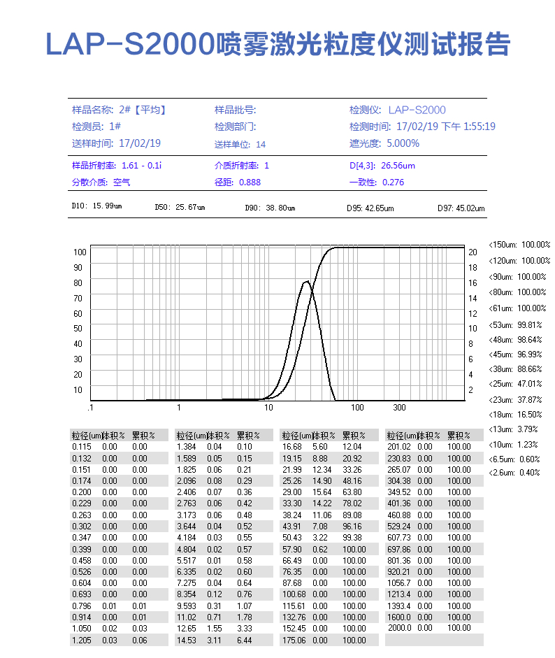 LAP-S2000噴霧激光粒(lì)度分析儀主要性(xing)能特點: