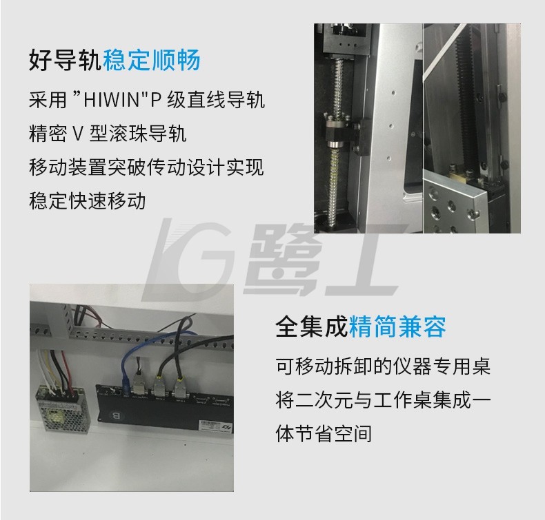 儀(yí)器X、Y軸采用精密(mi)級交叉滾子導(dǎo)軌,Z軸采用中國(guo)台灣上銀高精(jīng)度H級直線導軌(gui),Z軸箱體采用整(zhěng)體鑄鋁設計,保(bao)證儀器Z軸垂直(zhí)度、機械精度的(de)穩定性及可靠(kào)性。